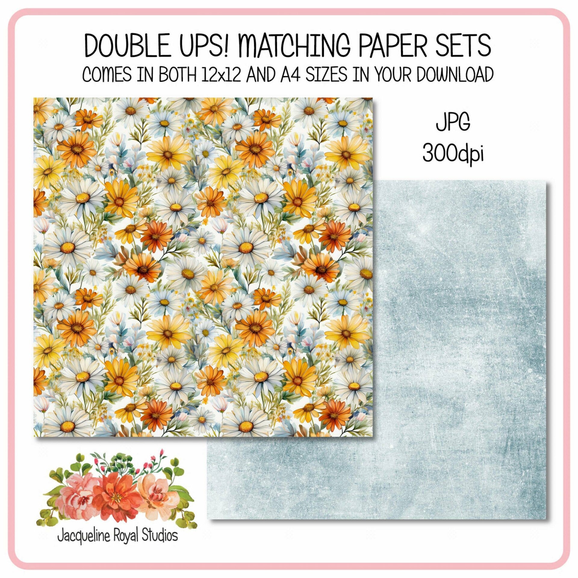 Introducing a stunning set of two perfectly matching patterned papers, each showcasing breathtaking artwork and vibrant color combinations. Whether you're looking to enhance your scrapbook, create unique greeting cards, or add flair to your art projects, these high-quality papers are the perfect choice. You will get both 12x12 and A4 sizes in your download, you will receive them in a crisp 300dpi JPG format, ensuring that every detail of the beautiful designs is captured with precision. Elevate your creative endeavors with these exquisite patterned papers and let your imagination run wild as you explore endless possibilities. Commercial use is perfectly ok.