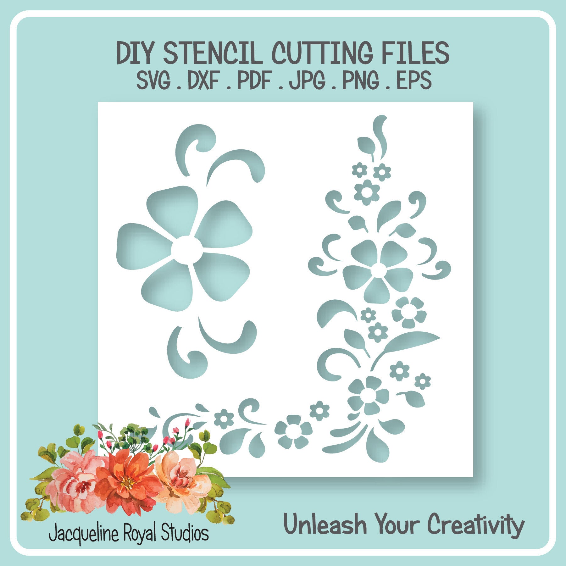 JPG. PNG. SVG. DXF. PDF and EPS Vector. All easily resized to suit your needs. Commercial Use is perfectly ok. Why not sell your cut stencils at craft fairs or in your online store! The possibilities are endless. The only restriction is you can't sell the files in digital format.