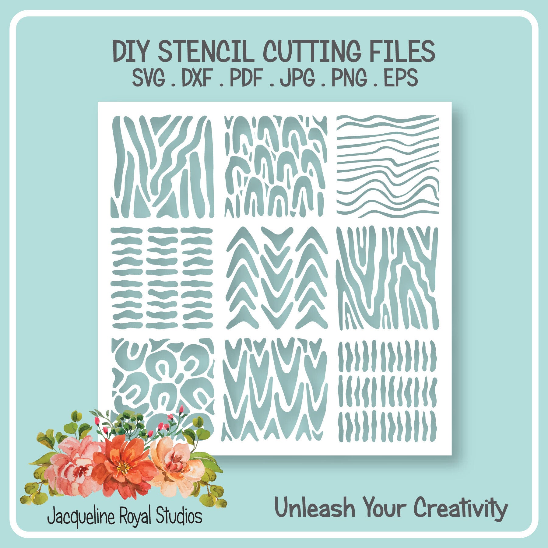 JPG. PNG. SVG. DXF. PDF and EPS Vector. All easily resized to suit your needs. Commercial Use is perfectly ok. Why not sell your cut stencils at craft fairs or in your online store! The possibilities are endless. The only restriction is you can't sell the files in digital format.