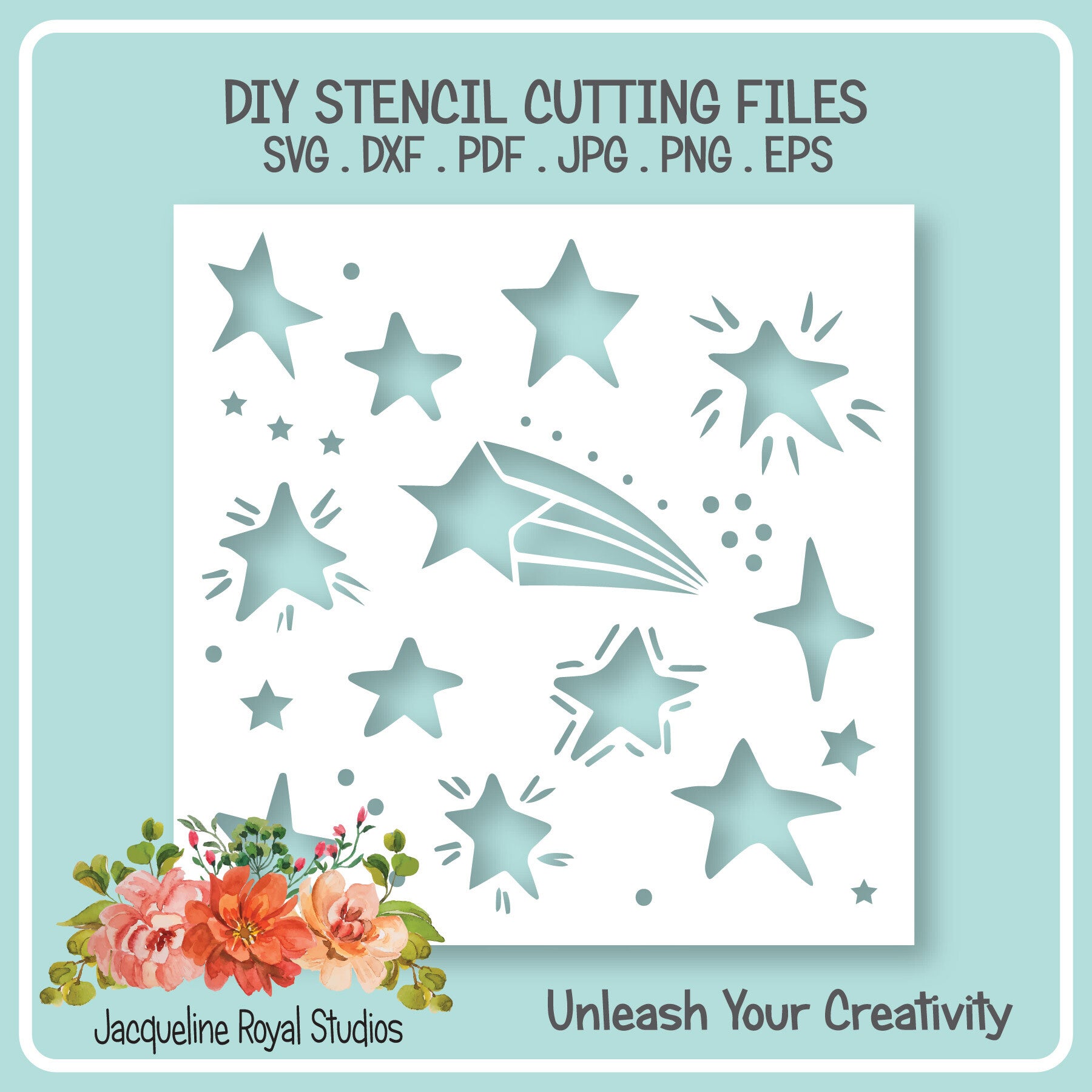 JPG. PNG. SVG. DXF. PDF and EPS Vector. All easily resized to suit your needs. Commercial Use is perfectly ok. Why not sell your cut stencils at craft fairs or in your online store! The possibilities are endless. The only restriction is you can't sell the files in digital format.