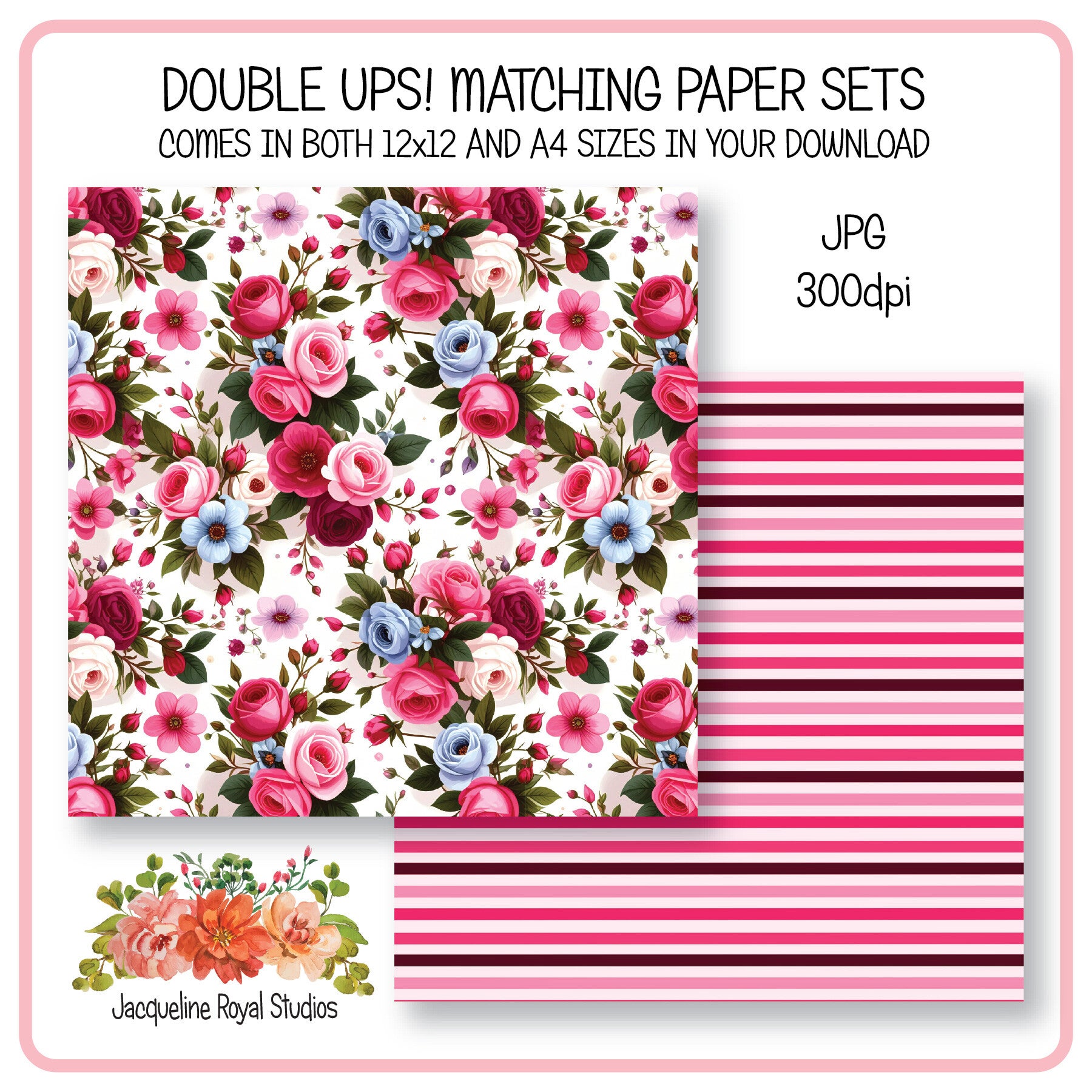Introducing a stunning set of two perfectly matching patterned papers, each showcasing breathtaking artwork and vibrant color combinations. Whether you're looking to enhance your scrapbook, create unique greeting cards, or add flair to your art projects, these high-quality papers are the perfect choice. You will get both 12x12 and A4 sizes in your download, you will receive them in a crisp 300dpi JPG format, ensuring that every detail of the beautiful designs is captured with precision. Elevate your creative endeavours with these exquisite patterned papers and let your imagination run wild as you explore endless possibilities. Commercial use is perfectly ok.